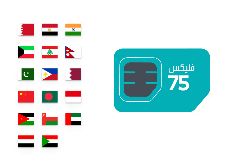 - 400 دقيقة محلّية لكل الشبكات وللدول التالية (البحرين، بنغلاديش، الصين، مصر، الهند، إندونيسيا، الأردن، الكويت، لبنان، نيبال، عُمان، باكستان، الفلبين، قطر، السودان، الإمارات، اليمن)