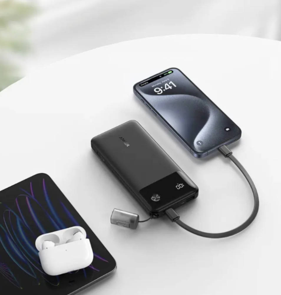باور بانك أنكر (10,000 مللي أمبير، 22.5 واط)، USB-C، دليل التعليمات.
