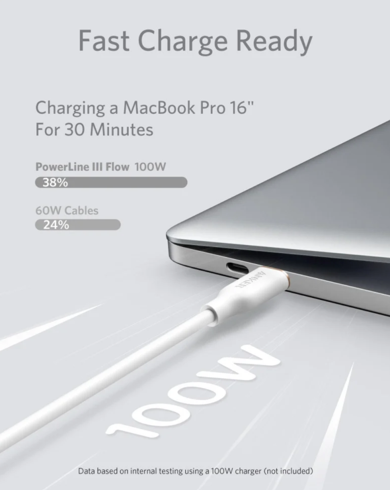 أكثر كابل لدى انكر نعومة مع 25,000 انحناء ومرونه هذا الكابل جاهز للتعامل مع الضغط واجهاد الشحن اثناء التنقل