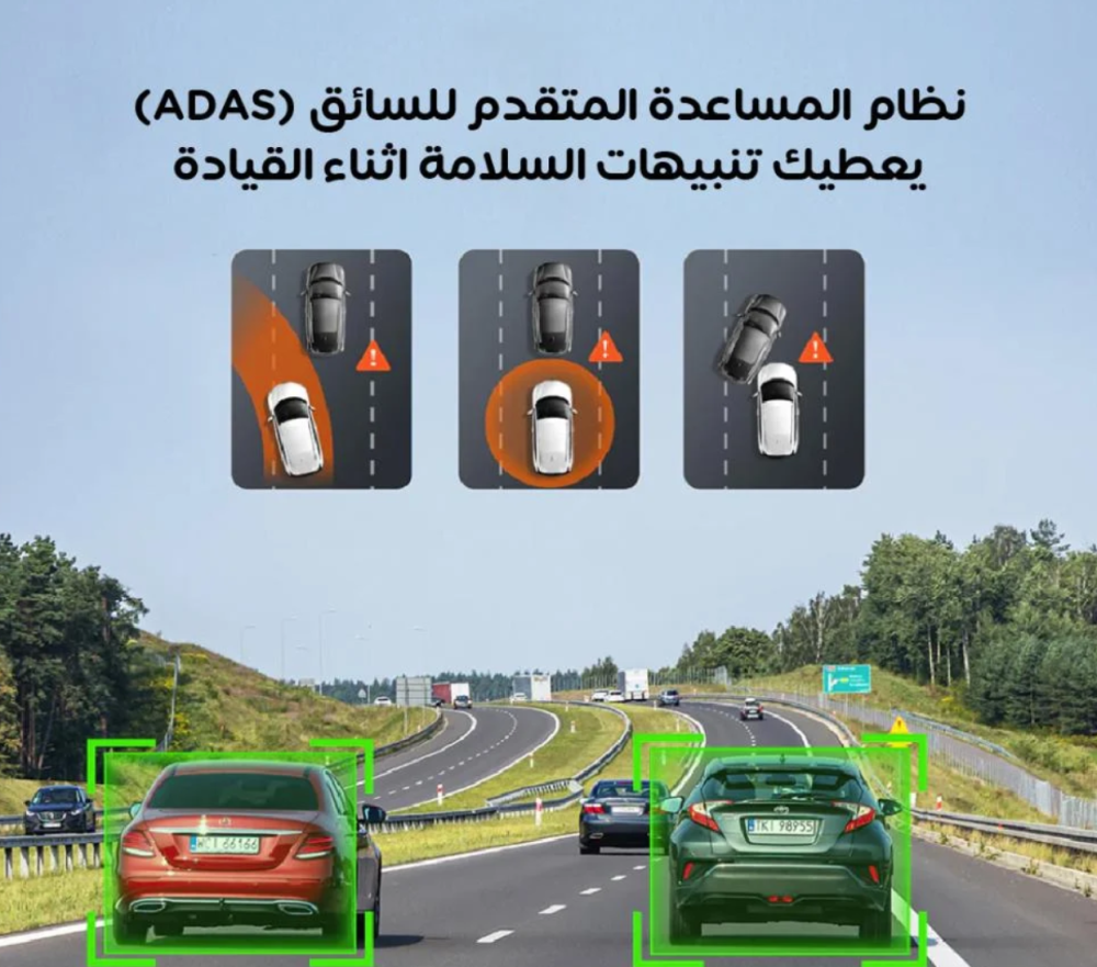 يوفر نظام المساعدة المتقدم للسائق (ADAS) تنبيهات السلامة في الوقت الحقيقي، من تحذيرات مغادرة المسار إلى تحذيرات التصادم الأمامي وتنبيهات البدء/التوقف، مما يجعل القيادة أكثر أمانًا.