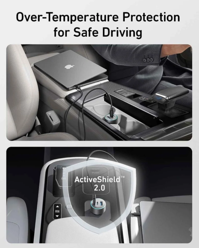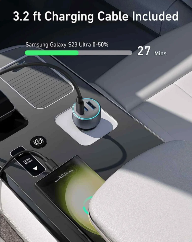 شاحن سيارة قوي يشحن اجهزة اللابتوب والهواتف بقوة 67 واط حتى أحدث الانواع منهم بسرعة فائقة.