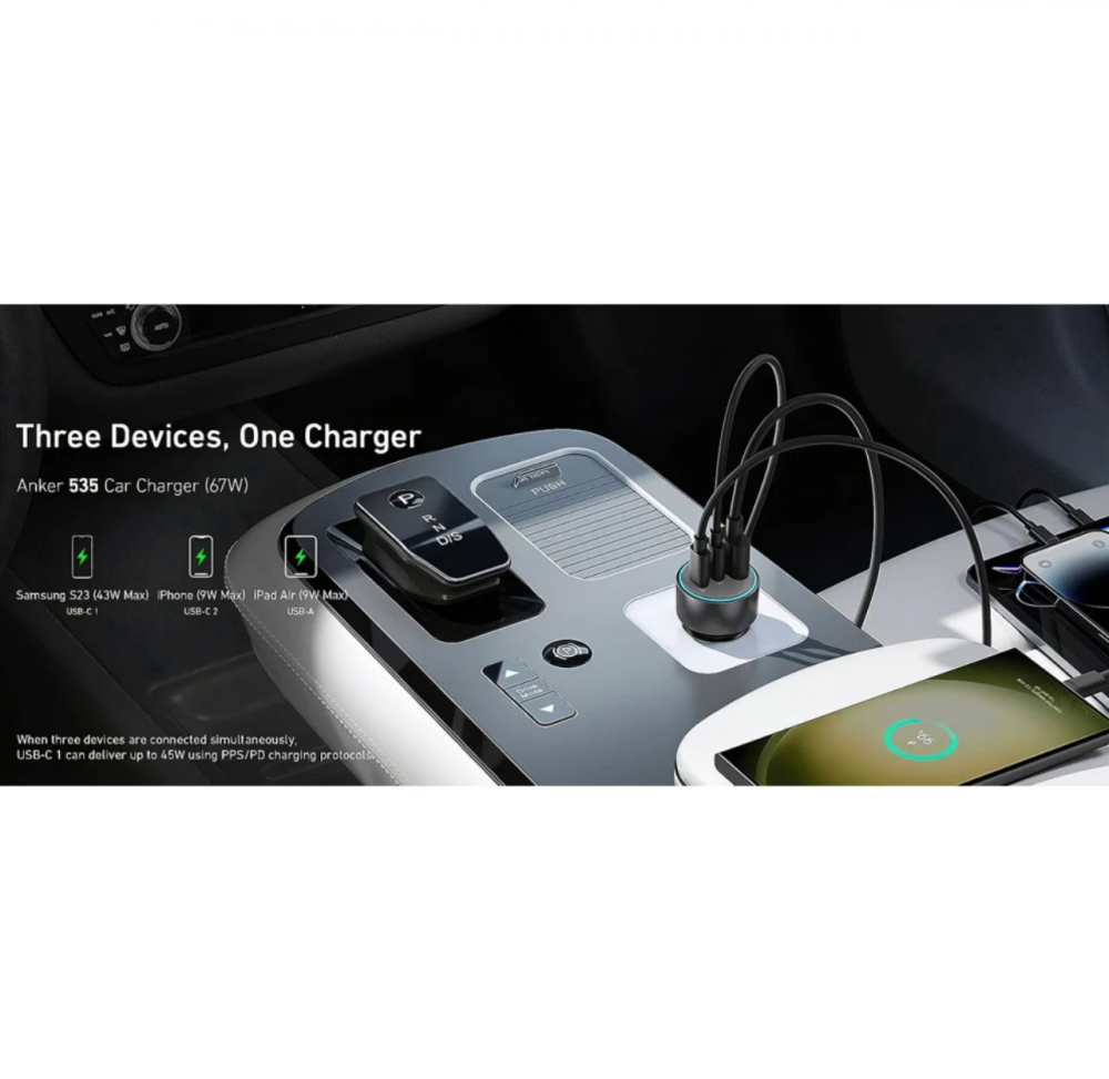 شاحن سيارة انكر 335 بقوة 67 واط - اسود