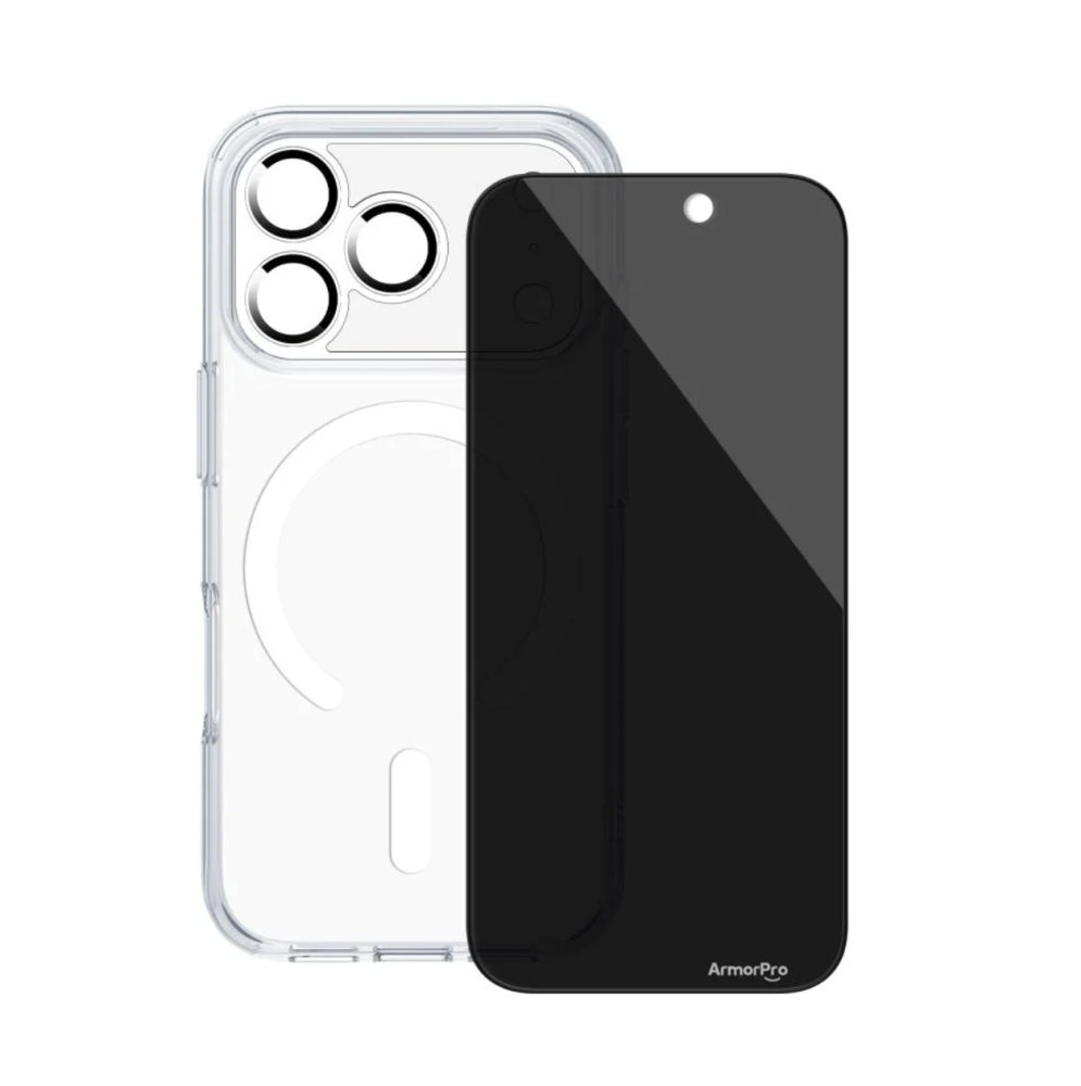 بكج ArmorPro ثلاثة في واحد ( كفر ماج سيف شفاف + حماية شاشة خصوصية + حماية للعدسات ) للايفون 17