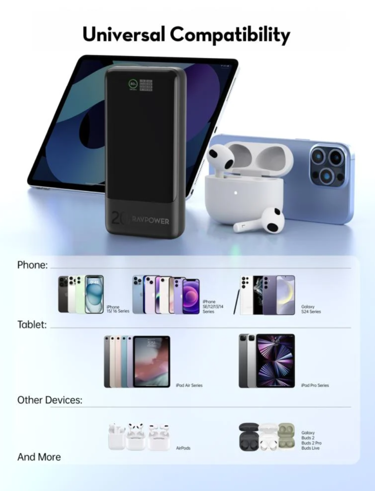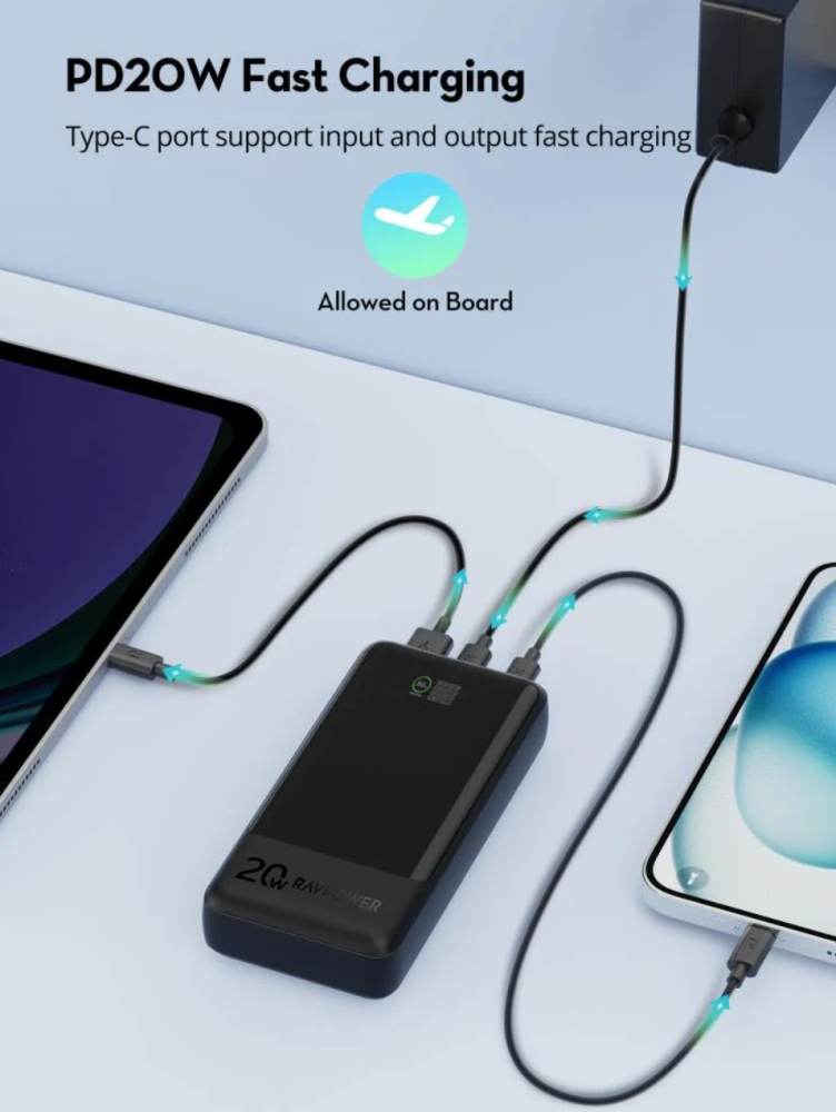 - يدعم الشحن السريع PD20W عبر منفذ Type-C مزدوج الوظائف.