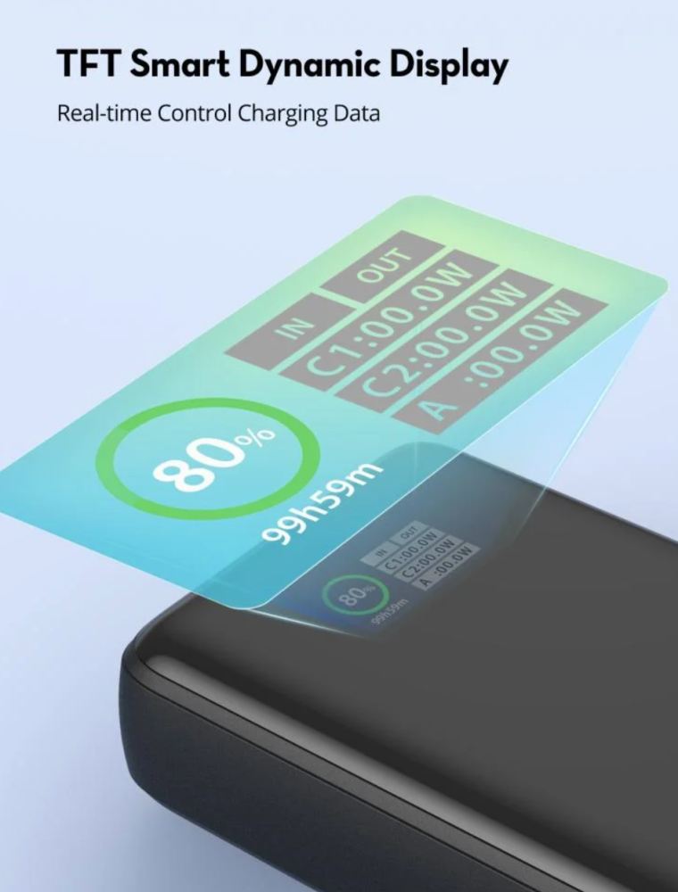 - تصميم ذكي مع شاشة TFT ديناميكية لعرض بيانات الشحن بدقة.